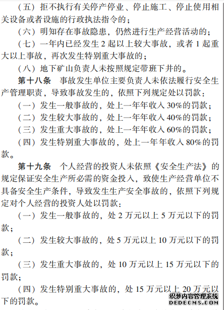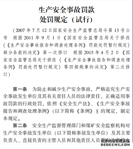 生產安全事故罰款 處罰規定 (試行)