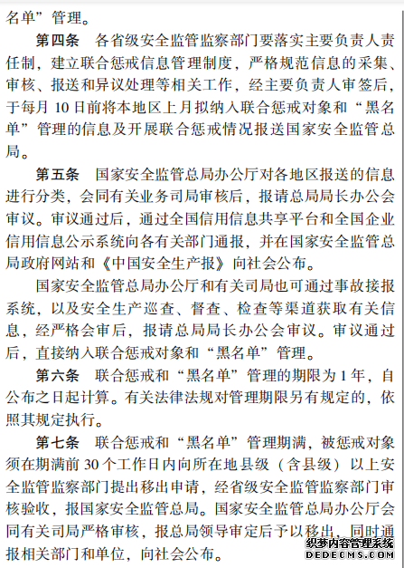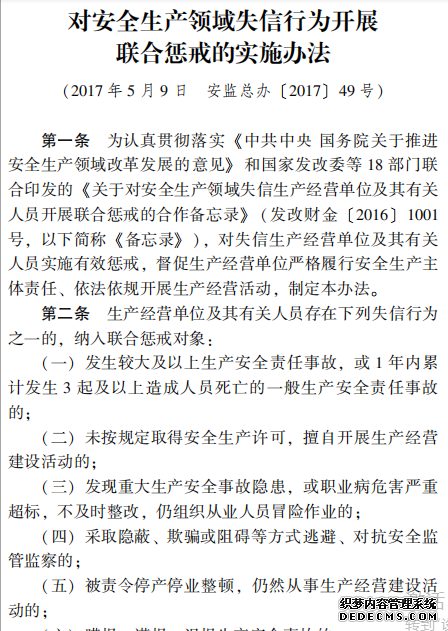 對安全生產領域失信行為開展 聯合懲戒的實施辦