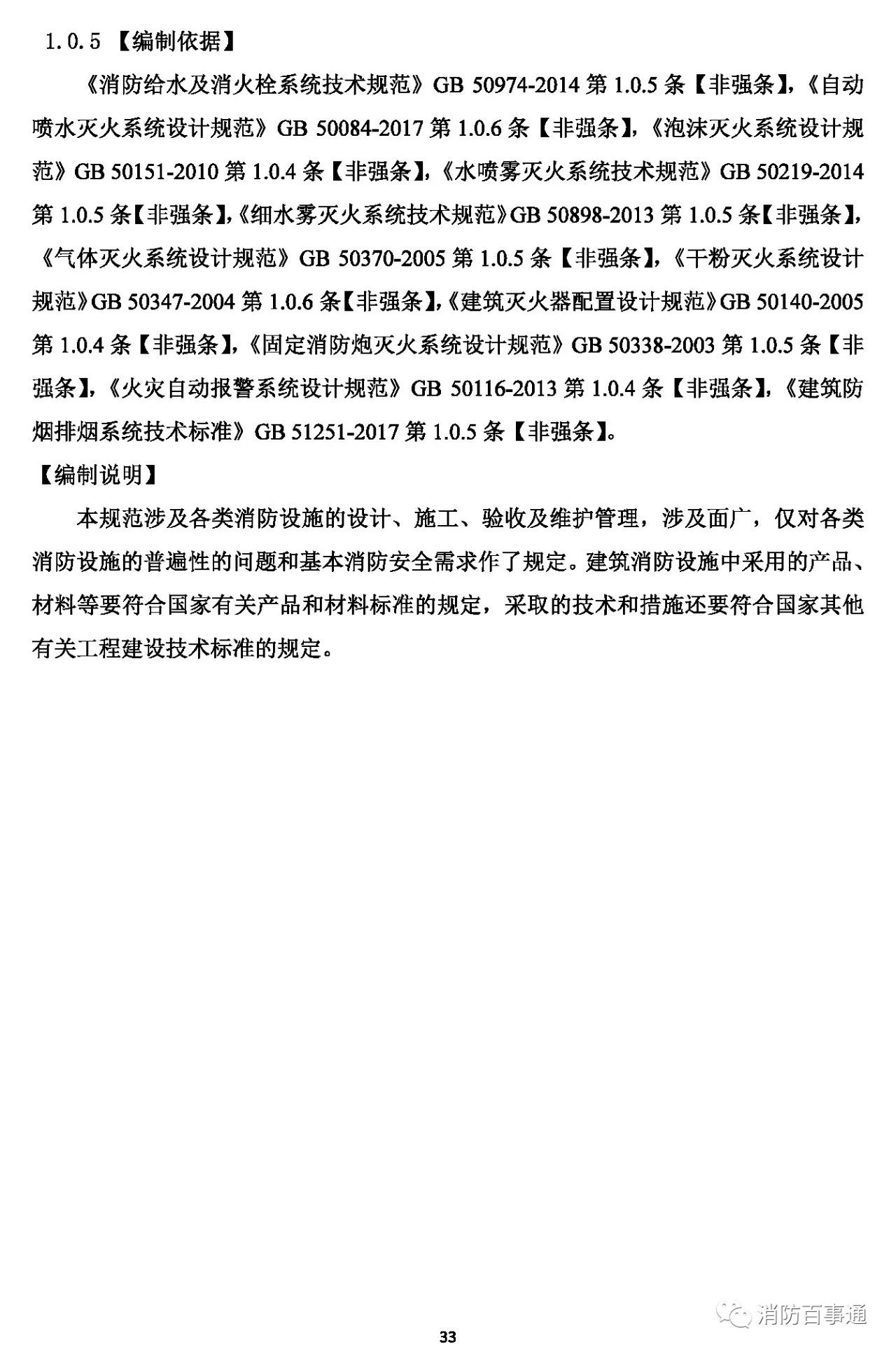 1.0.5 執行本規范必須同時加強工程質量安全管理,嚴格規范的實施監督。建筑在規劃、設計、施工和使用中的消防設施,除應遵守本規范外,尚應符合國家現行有關規范的規定。