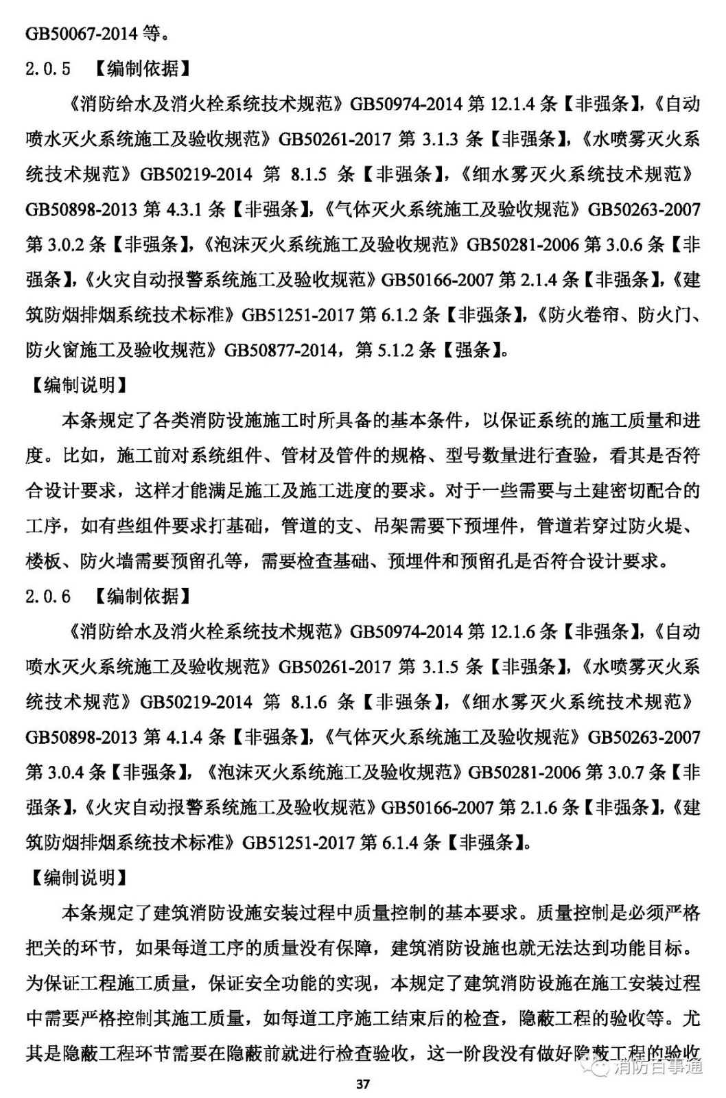2.0.6 建筑消防設施的安裝過程應進行質量控制,每道工序結束后應進行質量檢查。