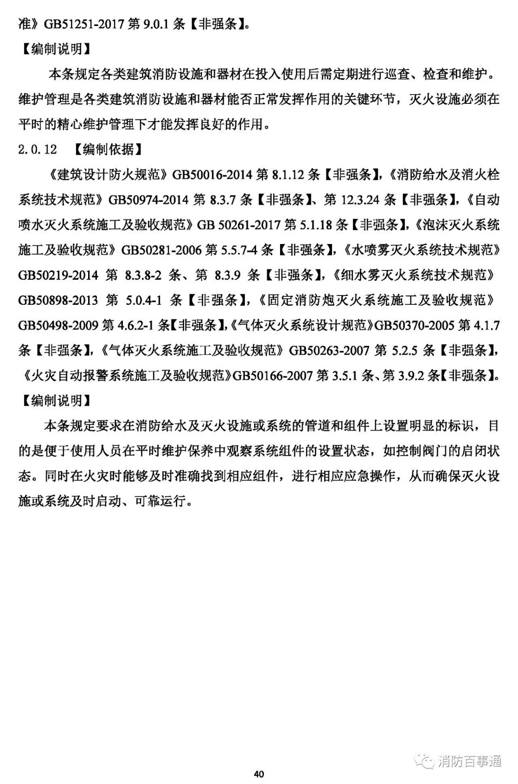 2.0.11 建筑消防設施和器材投入使用后,應定期進行巡查、檢查和維護,并應保證其處于正常運行或工作狀態,不得擅自關停或拆改固定滅火系統、火災自動報警系統和防煙排煙系統,不得使用超過有效期的消防產品。