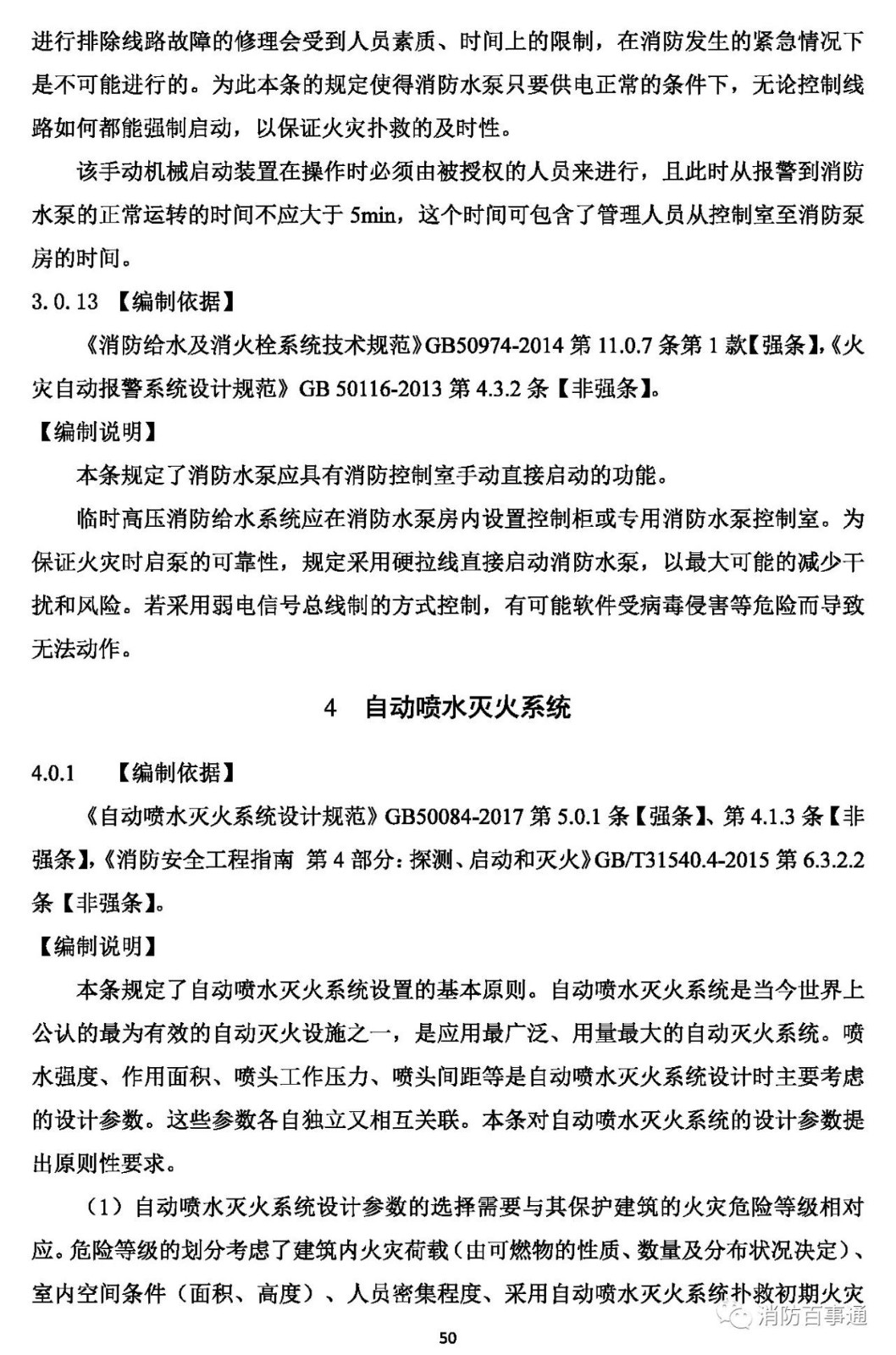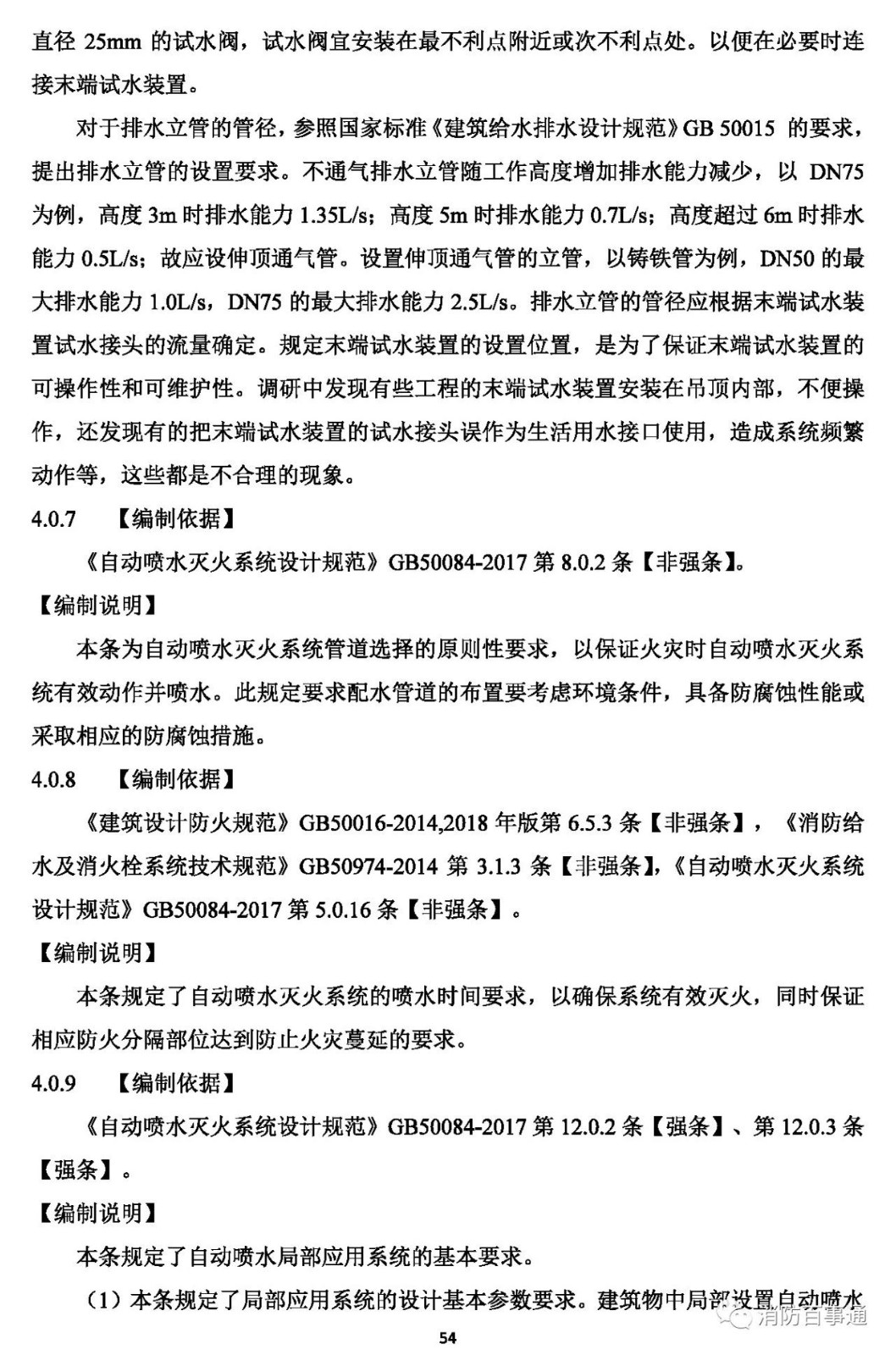 4.0.1 工業和民用建筑內的自動噴水滅火系統,其噴水強度、作用面積、噴頭工作壓力、噴頭間距等參數應與其火災危險等級、室內凈空高度等相適應。