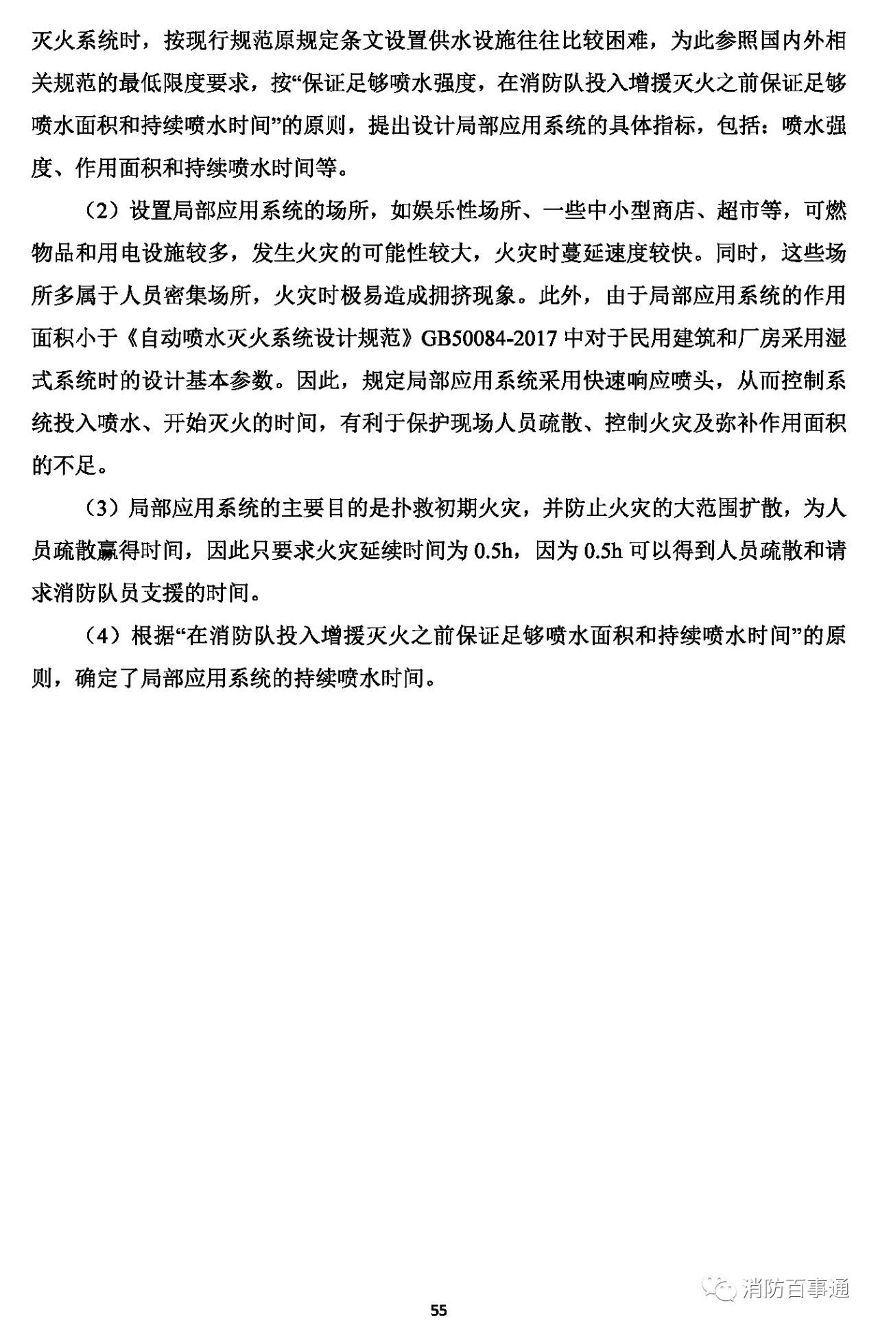 4.0.9 建筑中局部應用系統保護區域內的房間和走道均應布置快速響應噴頭,噴水強度不應低于6L/min·㎡,持續噴水時間不應低于0.5h。