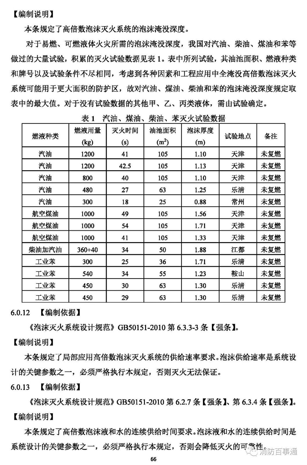4 用于撲救非水溶性可燃液體火災的泡沫-水噴淋系統、泡沫槍系統、泡沫炮系統,其水成膜泡沫液在緩釋放時的抗燒時間不應小于10min.;
