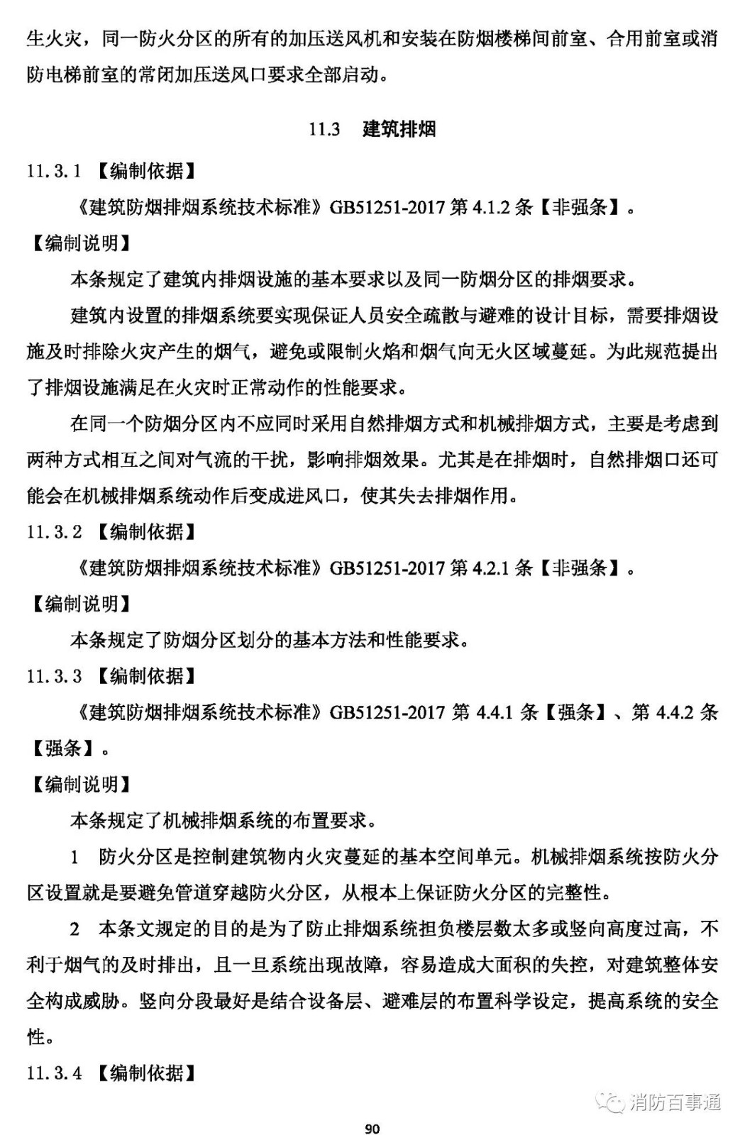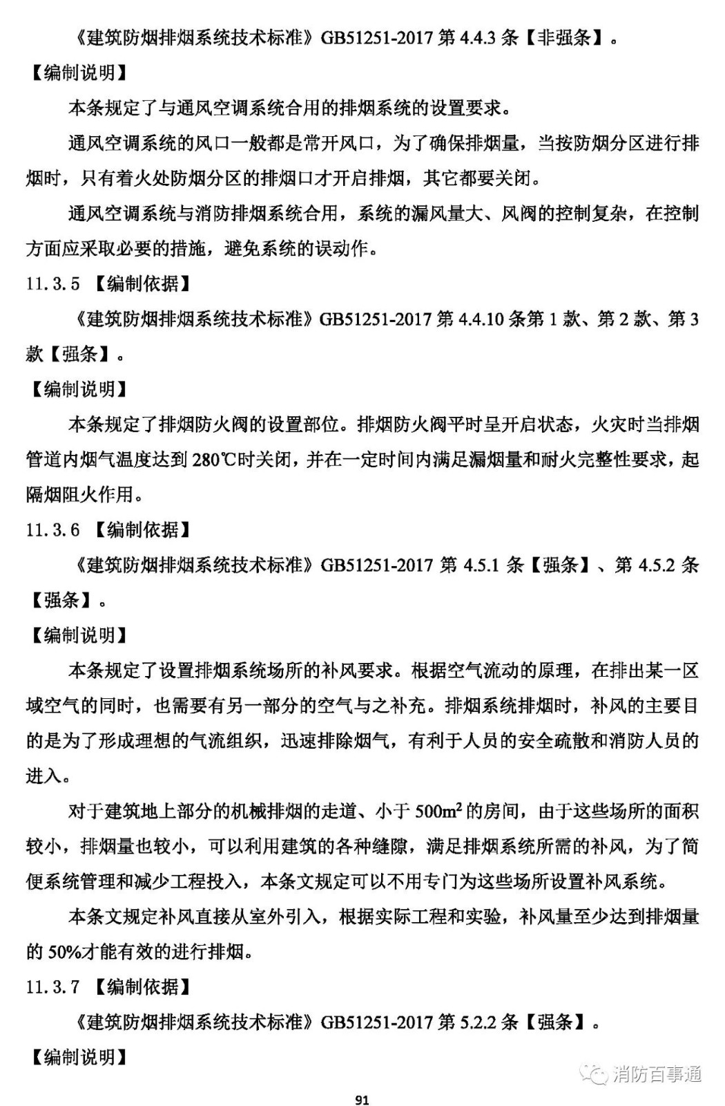 11.3.1 建筑內設置的排煙設施應有保證其在火災時正常動作的技術措施,同一個防煙分區應采用同一種排煙方式。