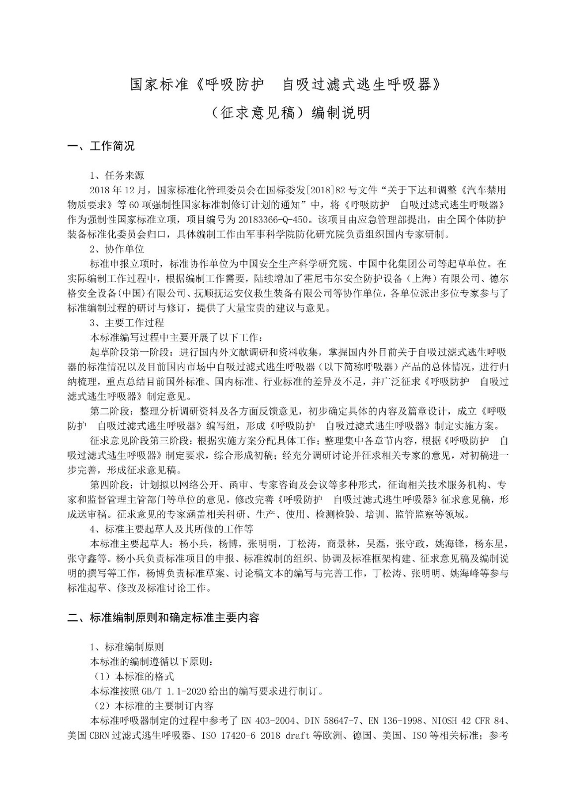 國家標準《呼吸防護自吸過濾式逃生呼吸器(征求意見稿)》公開征求意見