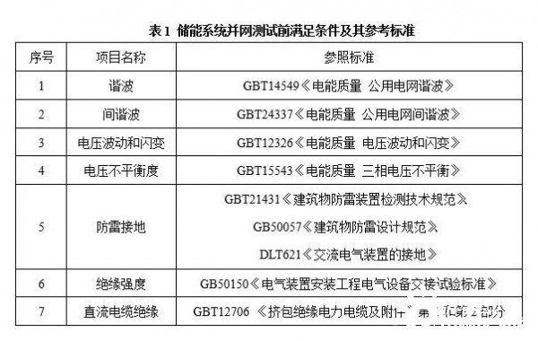 基本條件對電化學(xué)儲(chǔ)能系統(tǒng)的防雷接地裝置、接入點(diǎn)設(shè)備的絕緣強(qiáng)度和耐壓以及接入點(diǎn)電網(wǎng)的電能質(zhì)量等進(jìn)行了規(guī)定。具體參照的標(biāo)準(zhǔn)如表1所示。
