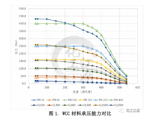 本文采用了對比冷(常溫)工作壓的方法來近似推算出與ASME標準Class壓力等級最鄰近的EN標準PN壓力等級。EN12516-1標準中列出的所有材料的冷工作壓都是相同的。而ASME B16.34標準中列出的冷工作壓和材料相關,故選取了其中一種較強材料(C12A)的冷工作壓用于對比。 通過對比得到每個ASME標準 Class壓力等級對應的最鄰近的EN標準 PN壓力等級,見表1。同時,這樣的對應關系也和閥門設計的通用做法一致。本文的管道內徑,最小壁厚,材料承壓能力的對比都是依照表1中的對應關系來進行的。 1.2 材質承壓能力的對比 無論是ASME標準還是EN標準都列出了一些ASTM標準材料的壓力溫度等級,即材料在不同溫度下的承壓能力。本文選取了常見的閥體材料:碳鋼WCC,合金鋼 WC9和C12A進行研究,來對比兩個標準中相同材料在標準壓力等級下的承壓能力的差別。 圖1和圖 2顯示了WCC材料的溫度壓力曲線和Class與PN的對比,可以看出: (1)對于ASME的 Class 150和EN12516-1 的PN16,當溫度低于150攝氏度時,EN標準規定的材料承壓能力低于ASME標準規定的材料承壓能力,且隨著溫度升高,差距逐漸縮小。當溫度高于150攝氏度時,兩個標準對相同材料的承壓能力的規定近乎相同。 (2)對于ASME的 Class 300和EN12516-1 的PN40,在整個溫度的范圍內,EN標準規定的材料承壓能力均低于ASME標準規定的材料承壓能力。當溫度低于300攝氏度時,隨著溫度升高,差距逐漸縮小。當溫度高于300攝氏度時,兩個標準對相同材料的承壓能力的規定差別趨于一致,約為-7%。 (3)對于ASME的 Class 900和EN12516-1 的PN160, 在整個溫度的范圍內,EN標準規定的材料承壓能力均高于ASME標準規定的材料承壓能力。當溫度低于300攝氏度時,隨著溫度升高,差距越來越大。當溫度高于300攝氏度時,兩個標準對相同材料的承壓能力的規定差別趨于一致,約為24%。 (4)還有一點值得注意的,除了PN16,其他PN壓力等級對應的工作壓力在低于300攝氏度以下都是一樣的,而ASME等級對應的工作壓力是隨著溫度升高持續下降的。 1.3 對閥體設計的指導 在實際設計過程中,無論是為了縮短新產品推向市場的時間,還是從產品標準化、成本優化的角度去考慮,盡可能多地將已有的設計或者零部件(尤其是需要開發鑄造模具的閥體)應用到新的產品中,都是設計師不可避免要考慮的問題,可以采用同一個閥體鑄件的設計來滿足ASME 標準和EN標準的要求呢?為了解答這個問題,本文選取了三個不同壓力等級-低、中、高的十二個具體實例,各項參數的對比結果如表3 所示。 (1)低壓ASME Class 300與 EN PN40 從表3中差別的百分數可以看出,在兩個尺寸下,滿足ASME標準和EN 標準的管道內徑和最小壁厚的差別,均小于5%。就是說,用同一個閥體設計來滿足兩個標準的設計要求是可以接受的。同時從圖2中可以看出,閥體常見材料在這兩個等級的承壓能力差別也較小,10%以內。因此,兩個設計可以在類似的實際工況中應用。 (2)中壓ASME Class 900與 EN PN160 對于中壓下尺寸為DN100和DN200的兩組設計,從差別的百分數可以看出,雖然每組中要對比的兩個設計的管道內徑非常接近,但是所要求的最小壁厚卻相差較多,超過了20%。在這種情況下,實踐中也是可以用同一個閥體設計來滿足兩個標準的設計要求的,但是需要評估由此帶來的對最小壁厚要求較小的閥體的成本的影響。另一方面,從圖2中可以看出,閥體常見材料在這兩個等級的承壓能力差別較大,在有些溫度下差別達到20%。這種材料承壓能力上的差別和最小壁厚的差別是一致的。 (3)高壓ASME Class 2500與EN PN400 對于高壓下尺寸為DN100和DN200,閥門的管道內徑和最小壁厚存在著巨大差別,30%-50%,故采用同一個閥體設計來滿足兩個標準的設計要求是不合理的。 還有另外一個因素需要在閥體設計時考慮,那就是閥體兩個端口之間的長度。ASME B16.34中指出可以按照ASME B16.10來確定端口對端口尺寸。EN12516-1 并未提及端口對端口尺寸,但歐標體系中EN558規定了端口對端口的尺寸。考慮到端口對端口尺寸并非標準強制要求,故本文未提供ASME B16.10和EN558的區別。 (1)管道內徑 ASME標準和EN標準在管道內徑的主要差別在于管道內徑是否隨著壓力等級的變化而變化。閥體設計時,管道內徑的差異會進一步放大閥門最小壁厚的差異。 (2)最小壁厚 兩個標準在閥門最小壁厚上的差異與壓力等級有關,差別大致在6%到 26%之間。 (3)材料承壓能力 本文所研究的五種材料在兩個標準相鄰壓力等級間的對比趨勢類似。當溫度高于一定值時,兩個標準對相同材料的承壓能力的規定的差別趨于一致,但不同的壓力等級的差別大小不一。 (4)通過十二個實例驗算,發現對于DN100和DN200, 同類設計壓力下,ASME標準和EN標準對管道內徑和最小壁厚要求的差別非常接近。并解釋了在實際設計工作中,需要根據具體的閥門尺寸,壓力等級一一比較管道內徑和最小壁厚等設計參數,并考慮到時間和成本的平衡,才能做出合理的決定。