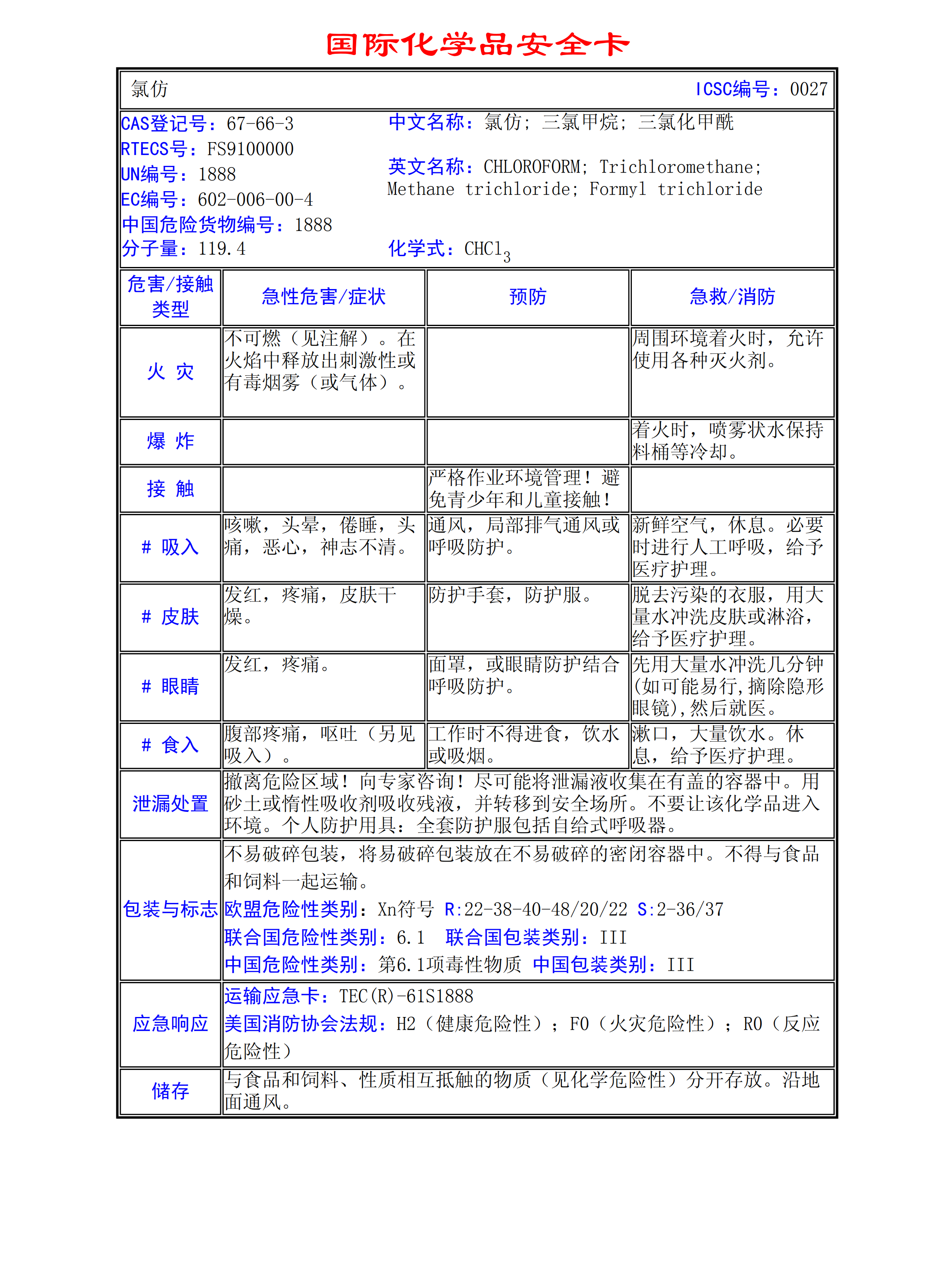 氯仿MSDS
