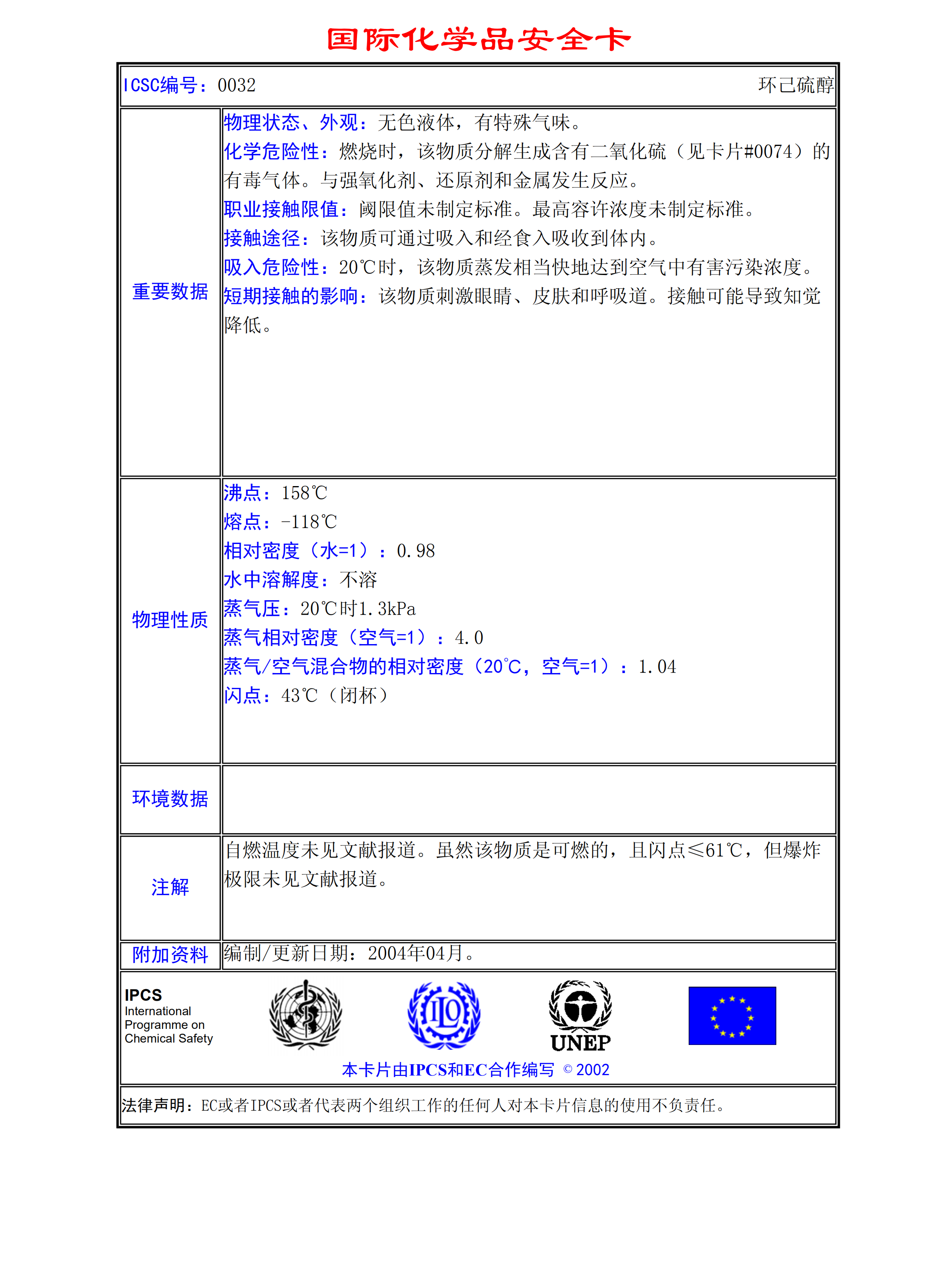 環己硫醇MSDS