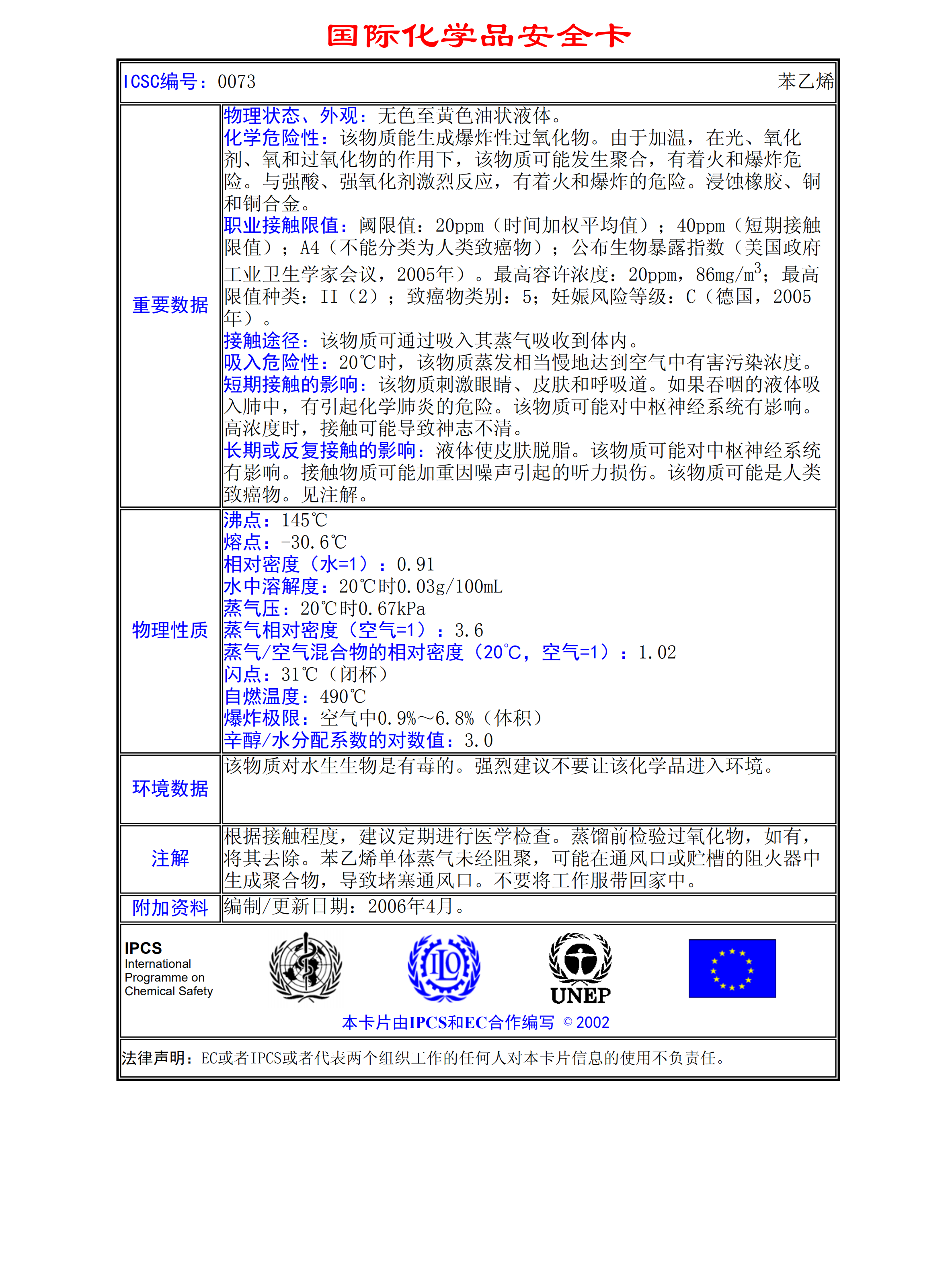 苯乙烯MSDS