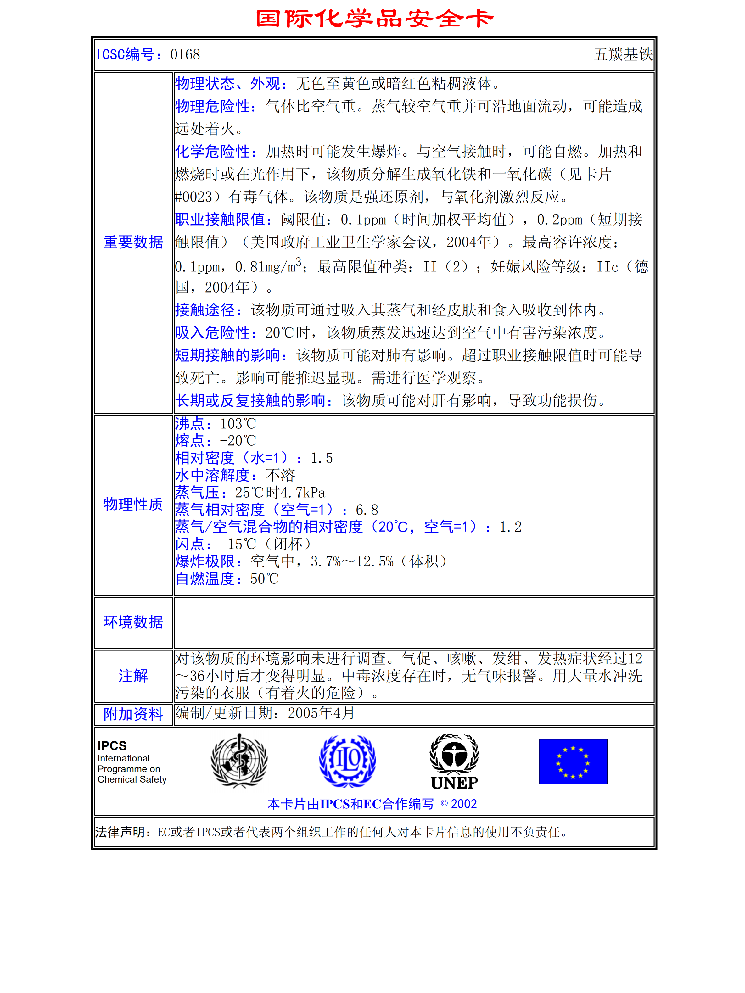 五羰基鐵MSDS