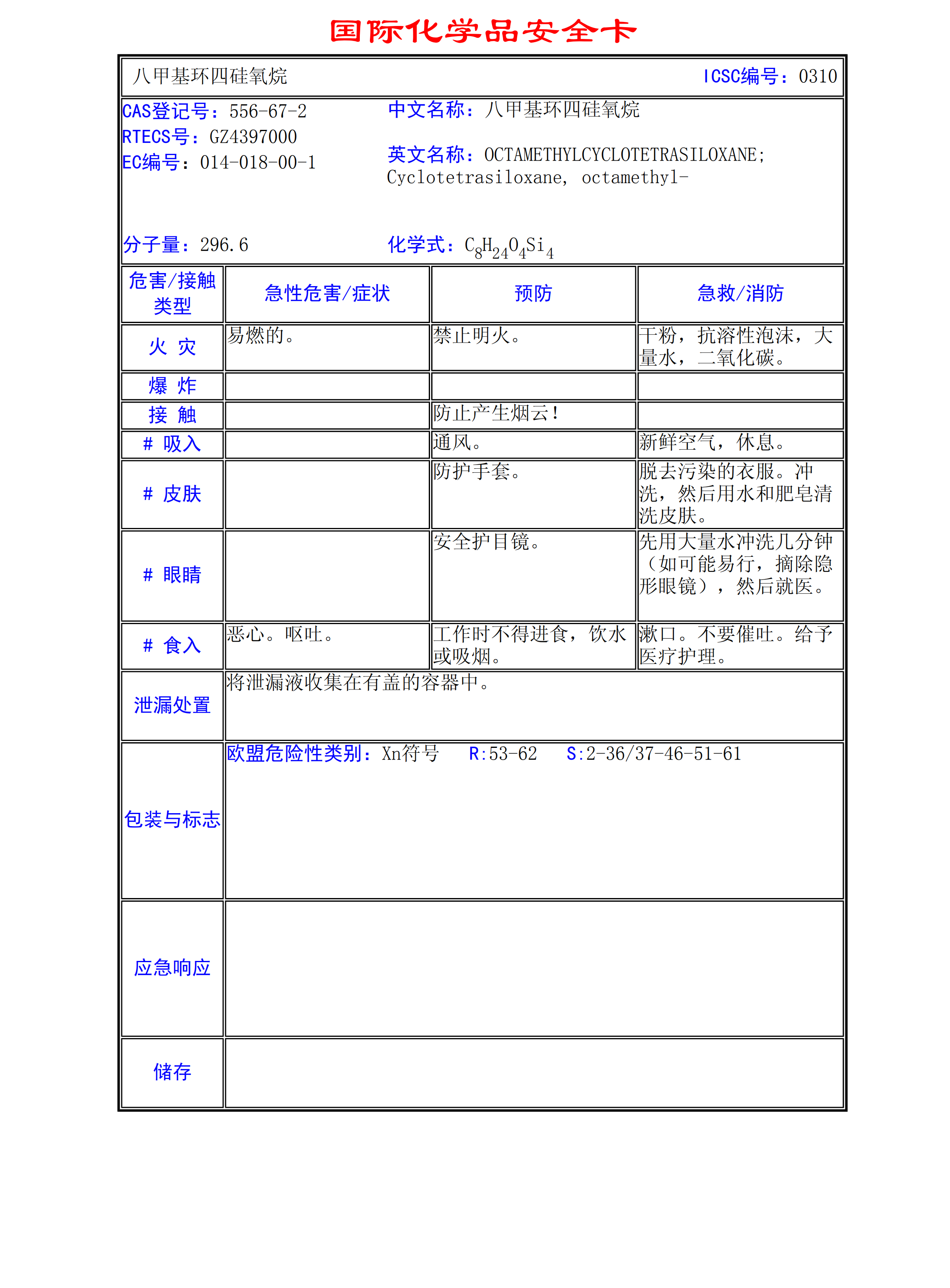 八甲基環四硅氧烷MSDS