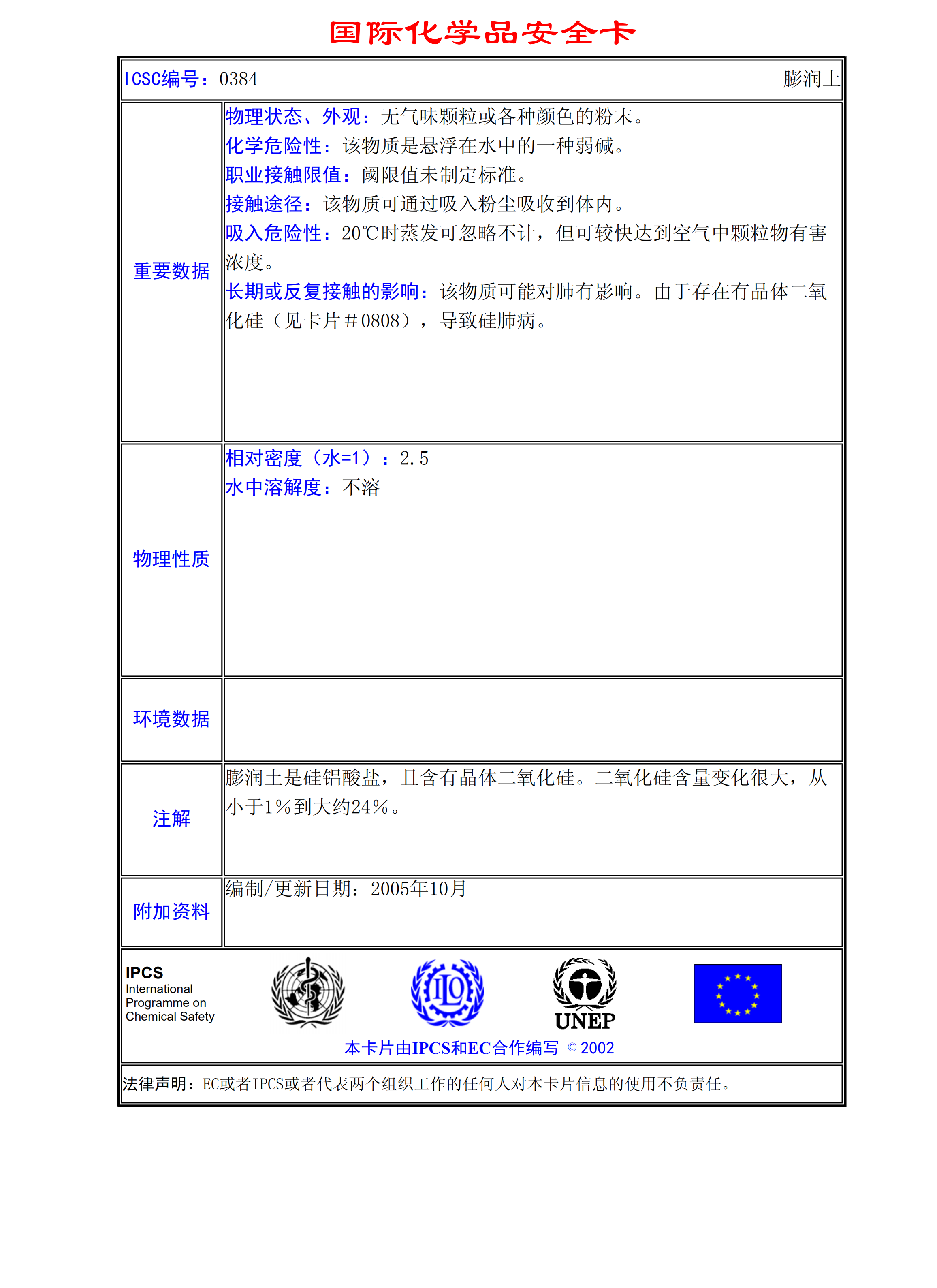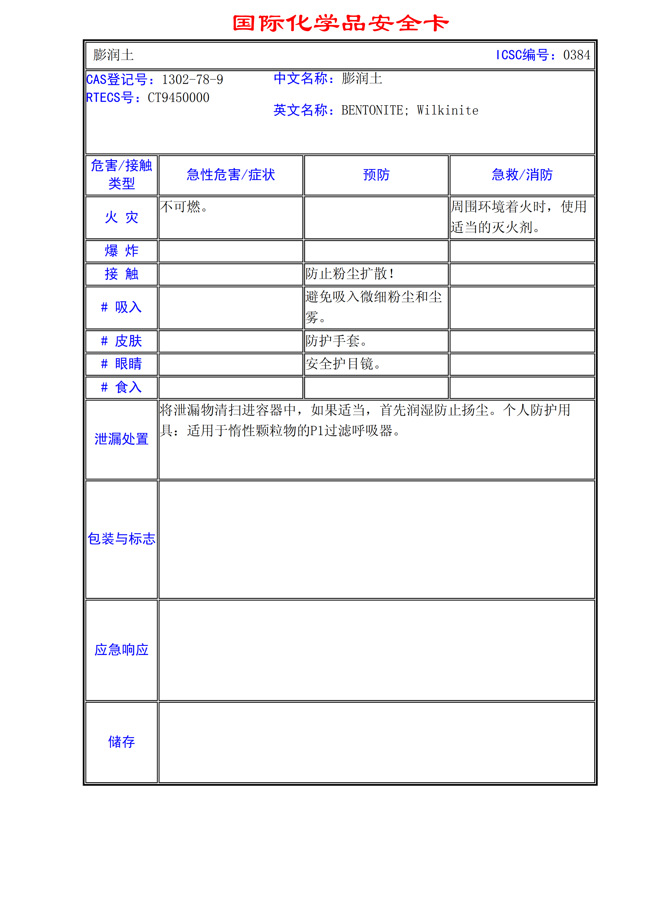 膨潤土MSDS