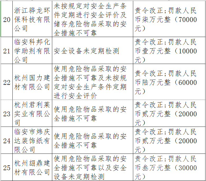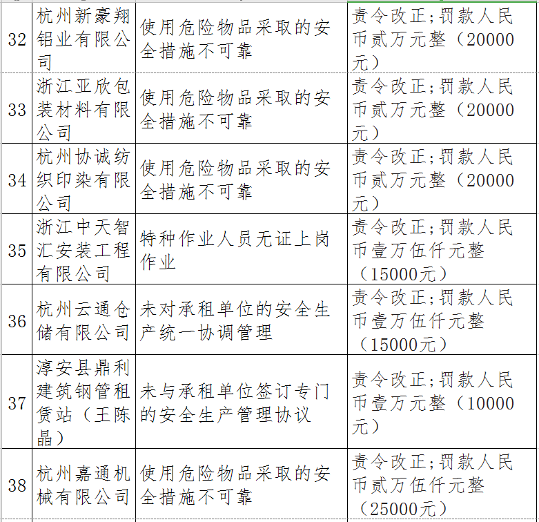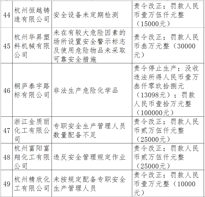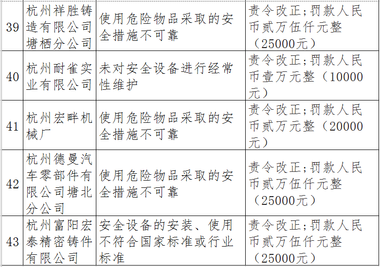 近日,杭州市應急管理局對50多家被行政處罰的企業(個人)進行曝光