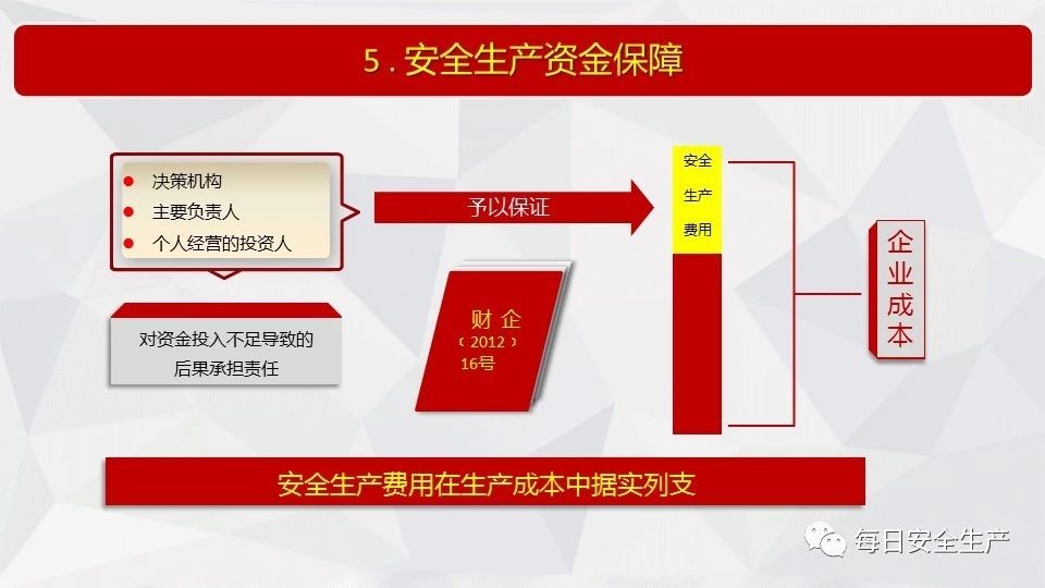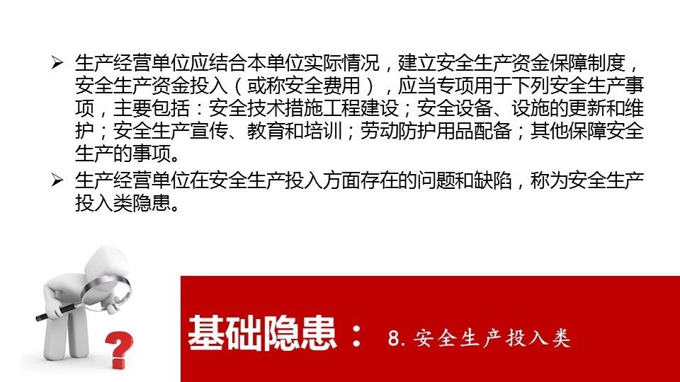 安全 生產 投入 | 決策機構、主要負責人或者個人經營的投資人不依照本法規定保證安全生產所必需的資金投入,致使生產經營單位不具備安全生產條件的 | 責令限期改正,提供必需的資金 | 責令生產經營單位停產停業整頓 |