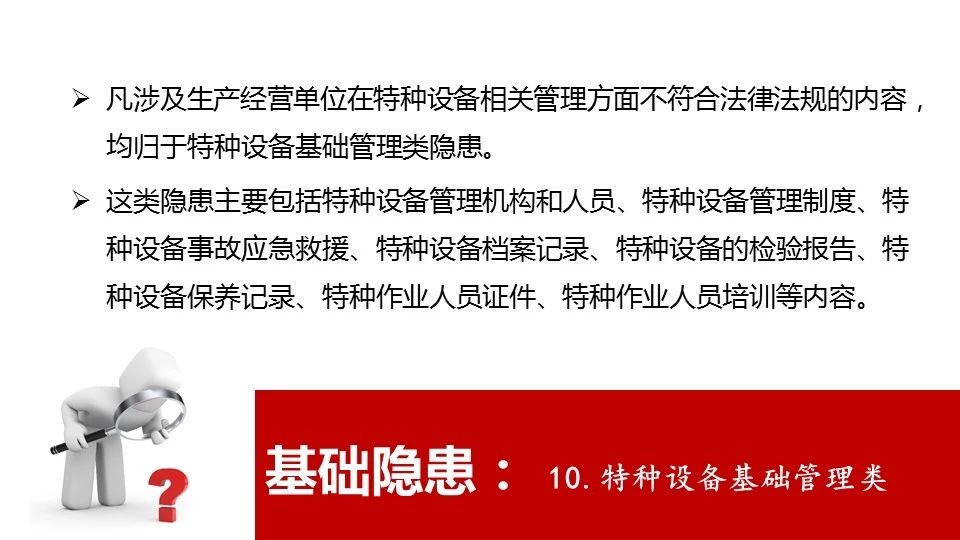 18 | 危險物品的容器、運輸工具,以及涉及人身安全、危險性較大的海洋石油開采特種設備和礦山井下特種設備未經具有專業資質的機構檢測、檢驗合格,取得安全使用證或者安全標志,投入使用的 |