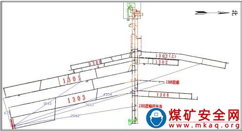 事故當班,綜掘隊和防沖項目部在 1303 工作面泄水巷及 3 號聯絡巷施工。