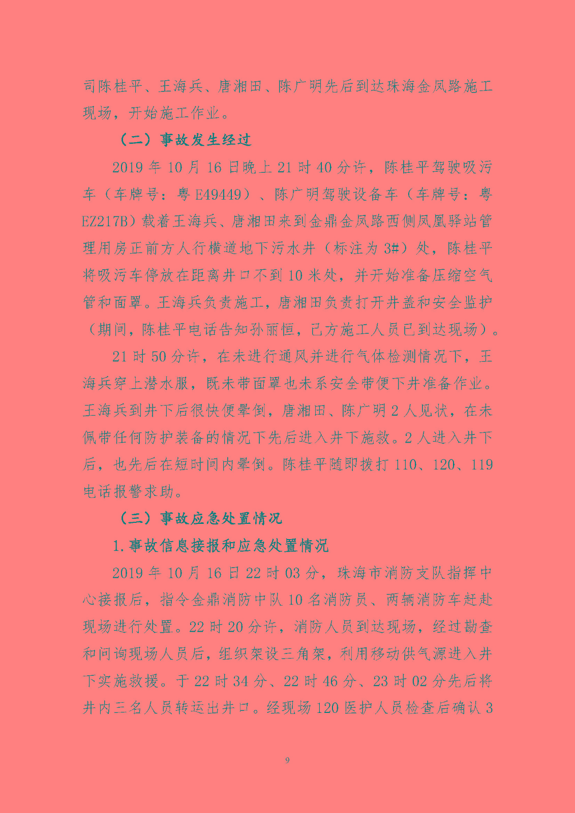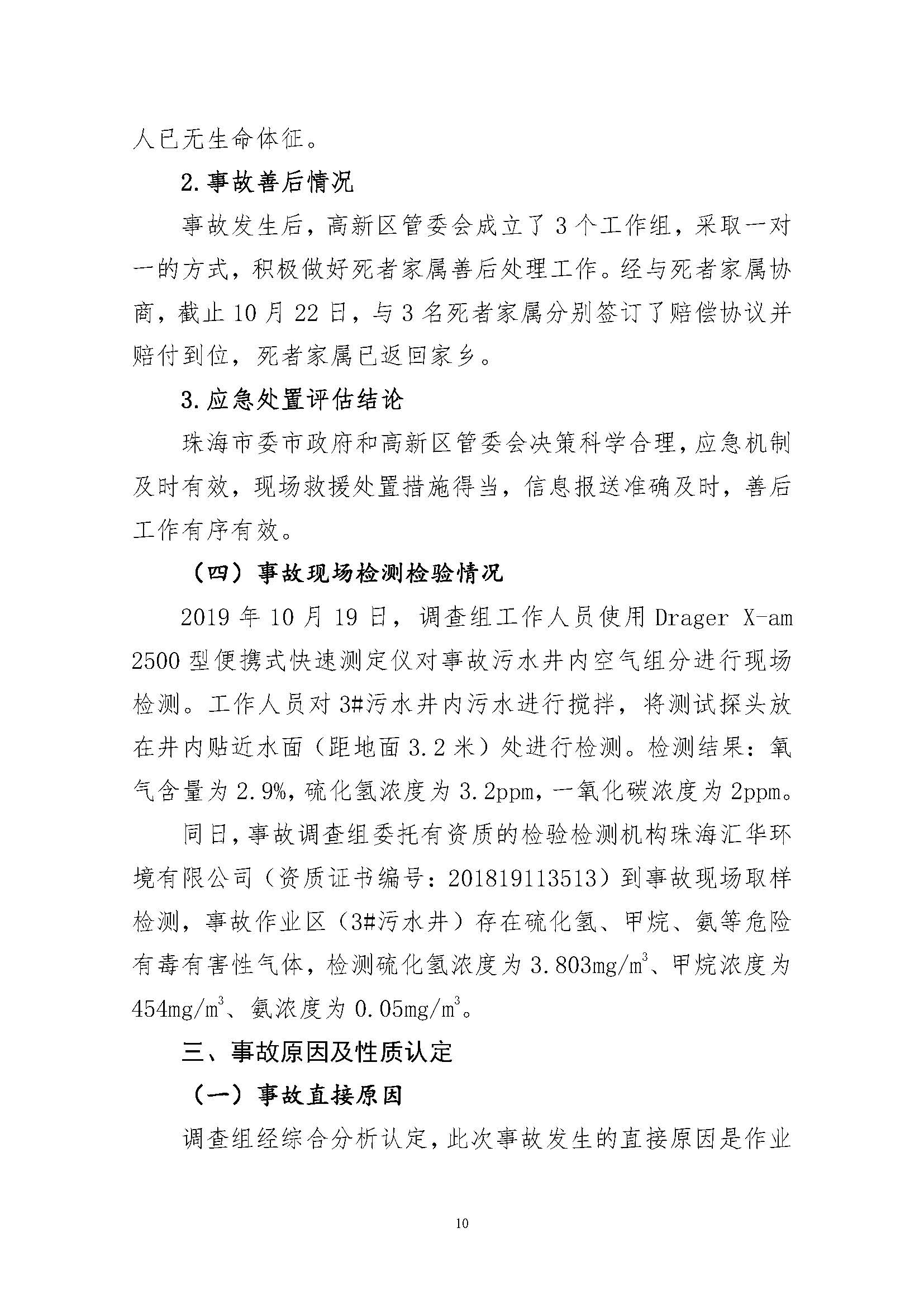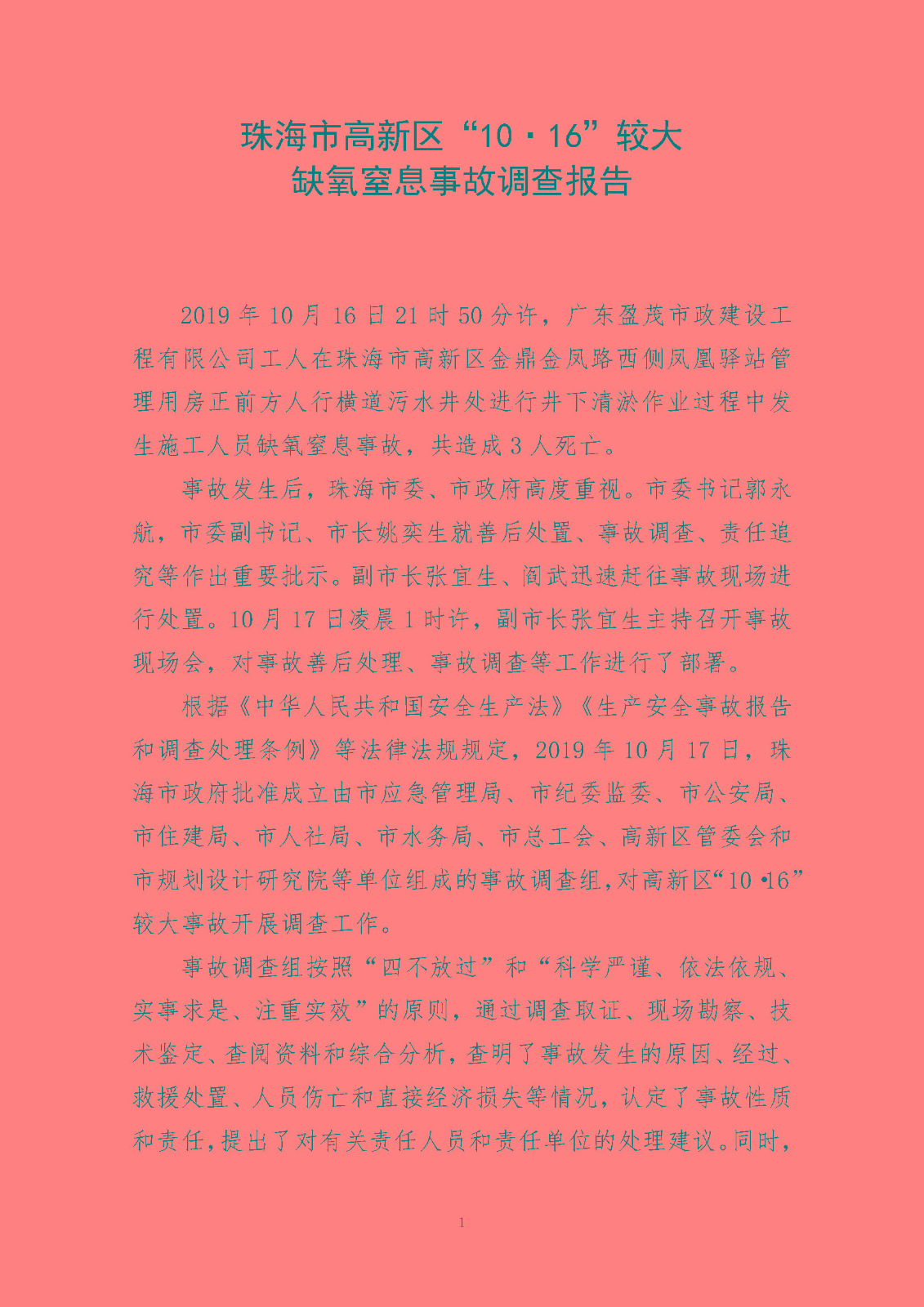 珠海市高新區“10·16”較大缺氧窒息事故調查報告