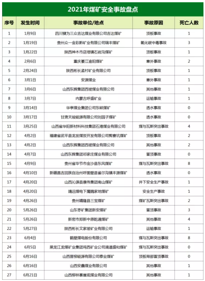 隨著國家政府的重拳出擊,煤礦安全問題取得了不錯的成績,國際能源網記者從2021年1月8日召開的全國礦山安全生產工作會議上獲悉,2020年共發生煤礦事故 122起、死亡225人,同比下降28.2%和28.8%;全年未發生重特大瓦斯事故,是新中國成立以來首次。據統計,2021年以來,我國共發生煤礦事故27起、死亡49人。其中,山西省作為產煤大省,也成為了煤礦事故的重災區。截至目前,山西省已發生8起煤礦事故。雖然煤礦事故總體數量在減少,但從能源全行業看,它依舊是事故高發的重災區。少報、瞞報煤礦事故的情況時有發生。