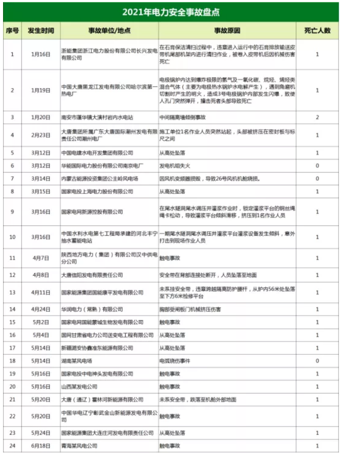據國際能源網記者統計2021年至今已發生了24起電力安全事故,造成22人死亡,僅2021年5月全國發生電力人身傷亡就發生了事故9起、死亡8人。其中出事企業包括中國大唐、國家電網等大型電力企業。