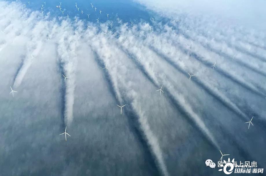 Horns Rev 1是全球第一座商業化規模的海上風場,最早由沃旭開發,安裝了80臺2MW Vestas風機,葉輪直徑80米,輪轂高度80米,總裝機160MW。場址所在位置風功率密度398W / m2,最遠離岸距離18公里,最大水深14米。下圖這張顯示風機尾流影響的著名照片就來自于這座風場。