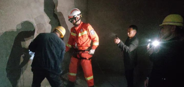 “在建居民樓為框架結(jié)構(gòu),墻壁尚未硬化加固處理過,可否比照兩人被困點(diǎn),從屋內(nèi)向外鑿出一個洞來,將他們救進(jìn)來?”救援現(xiàn)場,有人提出了一個大膽的想法。后經(jīng)綜合評估商定,現(xiàn)場救援人員覺得此方案可行。