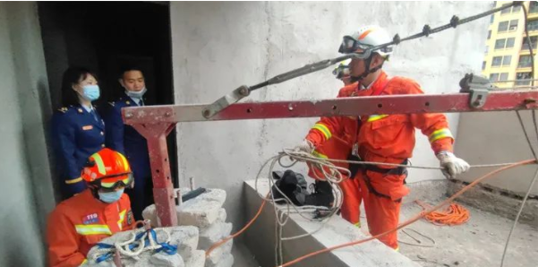 “師傅,千萬不要亂動,保持情緒穩(wěn)定,我們馬上來救你們!”消防指揮員一邊通過喊話,安撫被困工人,一邊令人攜帶救生繩索和防墜落部件等救生器材,進(jìn)入建筑物內(nèi)展開救援。