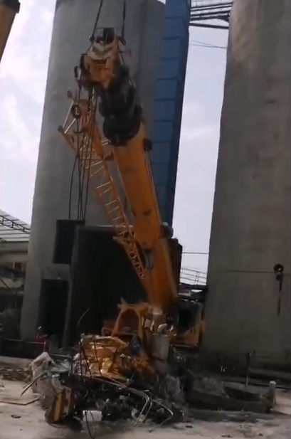 吊車在某電廠作業時被落物砸爛