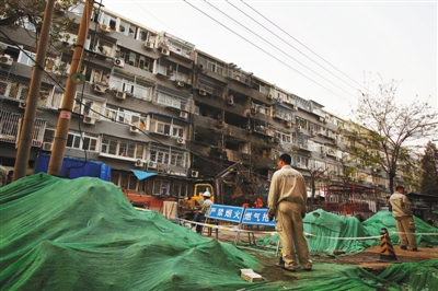記者在現場看到,在該小區1號樓與5號樓中間,有一條東西向橫穿小區的改造路段,由綠色遮避物蓋著隆起的土堆。而在靠近1號樓的空地上有一小溝,無遮避物掩蓋。“這個溝是今天(4月10日)上午新挖的,不知道里面是什么。”