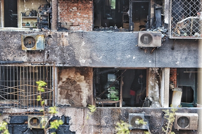 該小區4號樓1單元101的劉先生家則基本上化為灰燼。記者在他家看到,墻壁被燒成焦黑色,地上沉積著到腳踝的灰燼,整個房子被燒成毛坯房樣。“沙發、柜子這些大件物品都沒有了,廚房、衛生間都是玻璃的,也都燒化了,還有一些字畫。”劉先生說,家里藏有不少洋酒等,損失慘重。