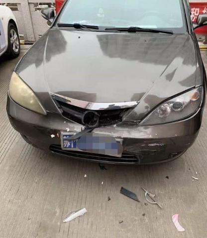 停在小區的轎車也遭了殃