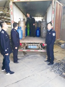 聯合執法組當場扣留了15公斤鋼瓶177個,50公斤鋼瓶23個,10公斤鋼瓶6個,5公斤鋼瓶19個,共計鋼瓶225個,暫交山東匯通能源利用集團有限公司代為保管。同時,公安部門控制了該窩點負責人,其本人因無證經營、非法儲存運輸經營液化氣,消防器材不完善等原因處以500元罰款,行政拘留10天。本次聯合執法行動有效維護了人民群眾生命財產和社會公共安全。接下來,將繼續加大安監、城管、公安等部門的巡查力度,建立信息交換機制,對液化氣非法充裝行為形成常態化監管,確保轄區居民的用氣安全。