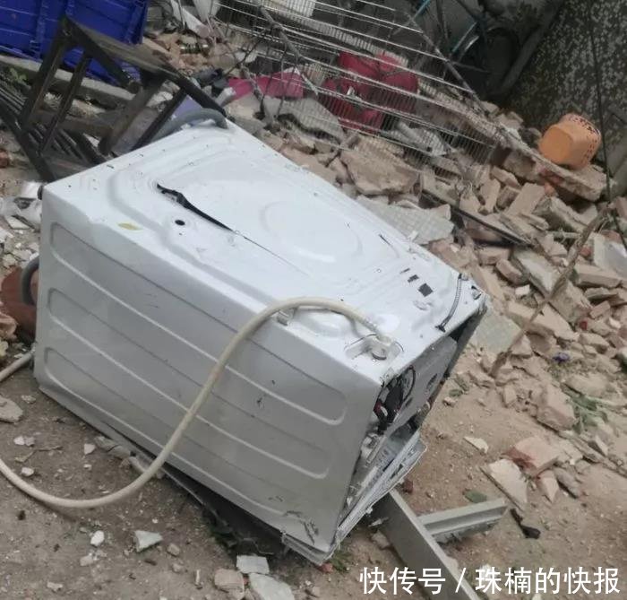 事發(fā)地點(diǎn)位于桃園小區(qū)34棟3梯2樓。記者在現(xiàn)場看到,2樓住宅西面及南面的墻壁被震塌,倒下的墻體砸中樓下一部小車。二樓門框和洗衣機(jī)等家具也掉到樓下,磚塊瓦礫、玻璃碎片灑落一地,現(xiàn)場一片狼藉,可見當(dāng)時(shí)爆炸的威力十分巨大。