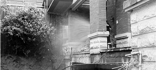 消火栓取水時,新的問題出現了。“消防栓在一處花欄墻附近,出水口緊貼著墻面,根本就沒辦法用。”為了不耽誤救援工作,消防官兵立即用器材對消火栓周邊墻壁進行處置,留出足夠的空間供水帶取水。