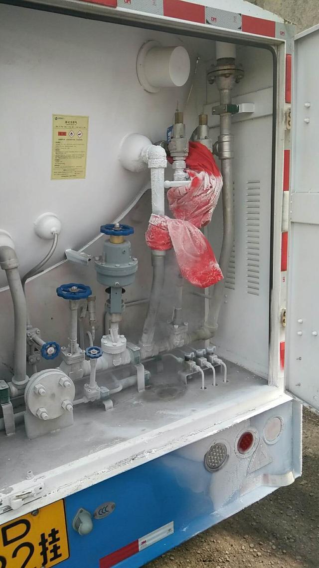 到達(dá)臨時處置場地后,因泄漏部位的溫度為零下160度左右,一旦防護(hù)措施不當(dāng)發(fā)生碰觸,很容易將人凍傷,最后在陽泉市華潤天然氣公司專業(yè)人員使用專用工具將松動螺絲擰緊,并經(jīng)相關(guān)人員重復(fù)檢查再無其他險情后,此次液化天然氣泄漏事故在多方科學(xué)、果斷、有序的配合下,