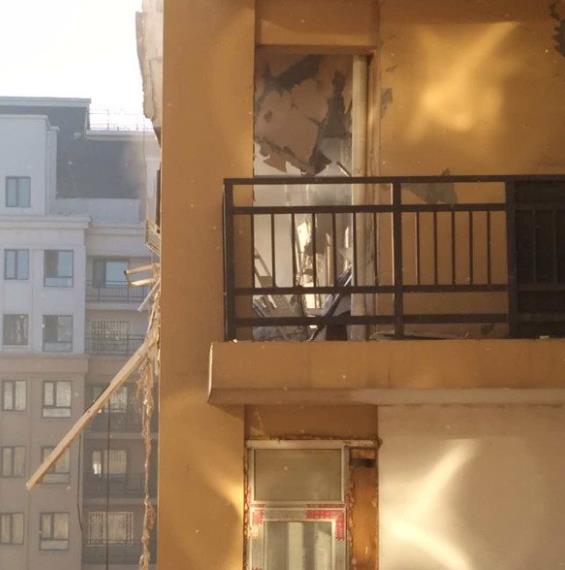 9 時許,記者趕到涉事小區(qū),小區(qū)地面上散落著大量玻璃碎片,此時小區(qū)3 號樓4 單元已被設(shè)立警戒線,29 樓一民宅窗戶碎裂,樓外墻體苯板裂開數(shù)條裂縫,該樓層走廊一片狼藉,樓層電梯間已嚴(yán)重變形,供暖、供水、電力、燃氣等部門工作人員在樓內(nèi)排查,樓內(nèi)居民已全部被疏散。