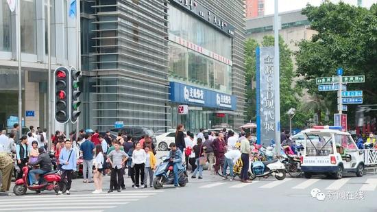 記者 何思勉 今天下午2點13分,南寧市金源CBD現代城也就是我現在所處的這個位置,發生了一起因施工而造成的管道燃氣泄漏事件,我們從目擊者提供的視頻可以看到,當時泄漏的瞬間是塵土飛揚,痕跡還是十分明顯的,那么通過半個多小時的處置,現在管道的閥門已經被關上了,也通過降低空氣中天然氣的濃度等措施,現在這個位置相鄰的街道已經恢復了行人的通行,但是現場的情況還在變化當中。