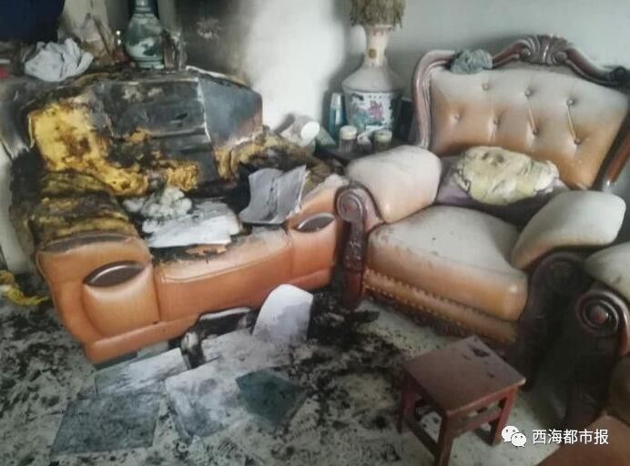 走進(jìn)事發(fā)的住戶家,屋里一片狼藉,沙發(fā)、電視機(jī)、洗衣機(jī)、電燈開關(guān)等物品被燒,臥室和客廳的玻璃碎了。家里養(yǎng)的小貓蜷在陽臺(tái)上一動(dòng)不動(dòng),它的嘴巴在流血,胡子和尾巴被燒。