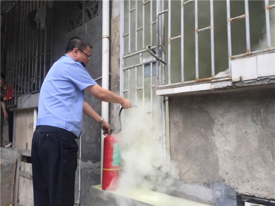 見狀,民警一邊組織警力疏散圍觀群眾,一邊用滅火器從窗口處進行滅火。所幸,該煤氣罐所剩煤氣不多。經過民警及時滅火,終于將火勢控制并撲滅。為防止二次事故發生,滅火后,民警又將煤氣罐扛出,放置于小區空曠位置,并聯系煤氣銷售公司的安全檢查人員前來徹底消除隱患。
