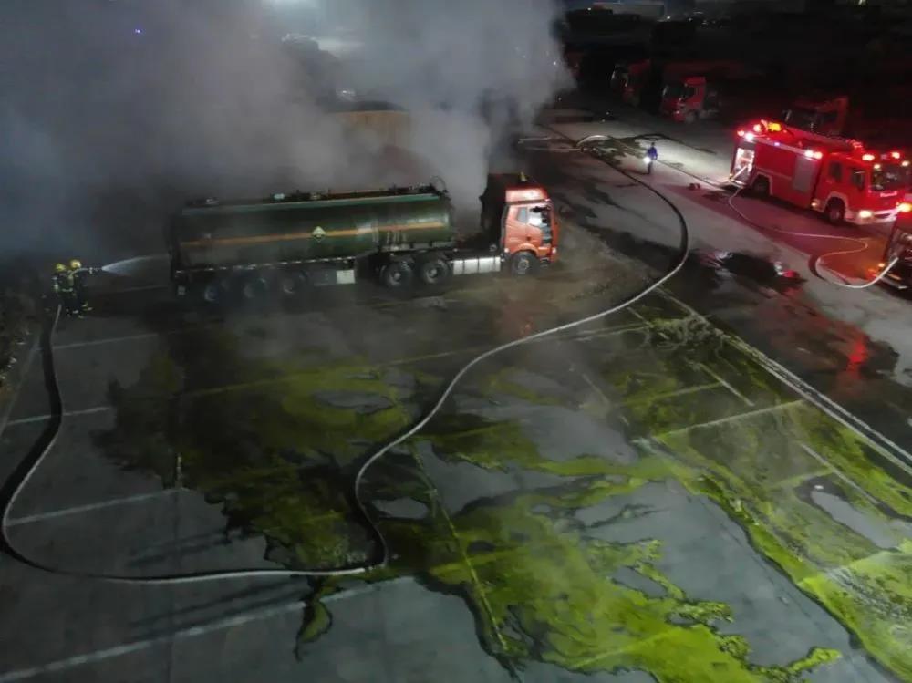 1輛防化洗消車、2輛水罐車、21名消防救援人員赴現(xiàn)場增援。消防救援人員到達(dá)現(xiàn)場后,了解到在停車場內(nèi)一輛載有30噸31%濃度鹽酸的大型儲罐車發(fā)生少量泄露,罐內(nèi)流出的鹽酸在空氣中揮發(fā)產(chǎn)生刺鼻氣味,現(xiàn)場附近緊挨著杭瑞高速公路和7棟居民樓。根據(jù)現(xiàn)場情況,消防救援人員立即擴大警戒范圍,疏散周邊經(jīng)過人員,禁止無關(guān)車輛靠近,確保警戒區(qū)域安全。